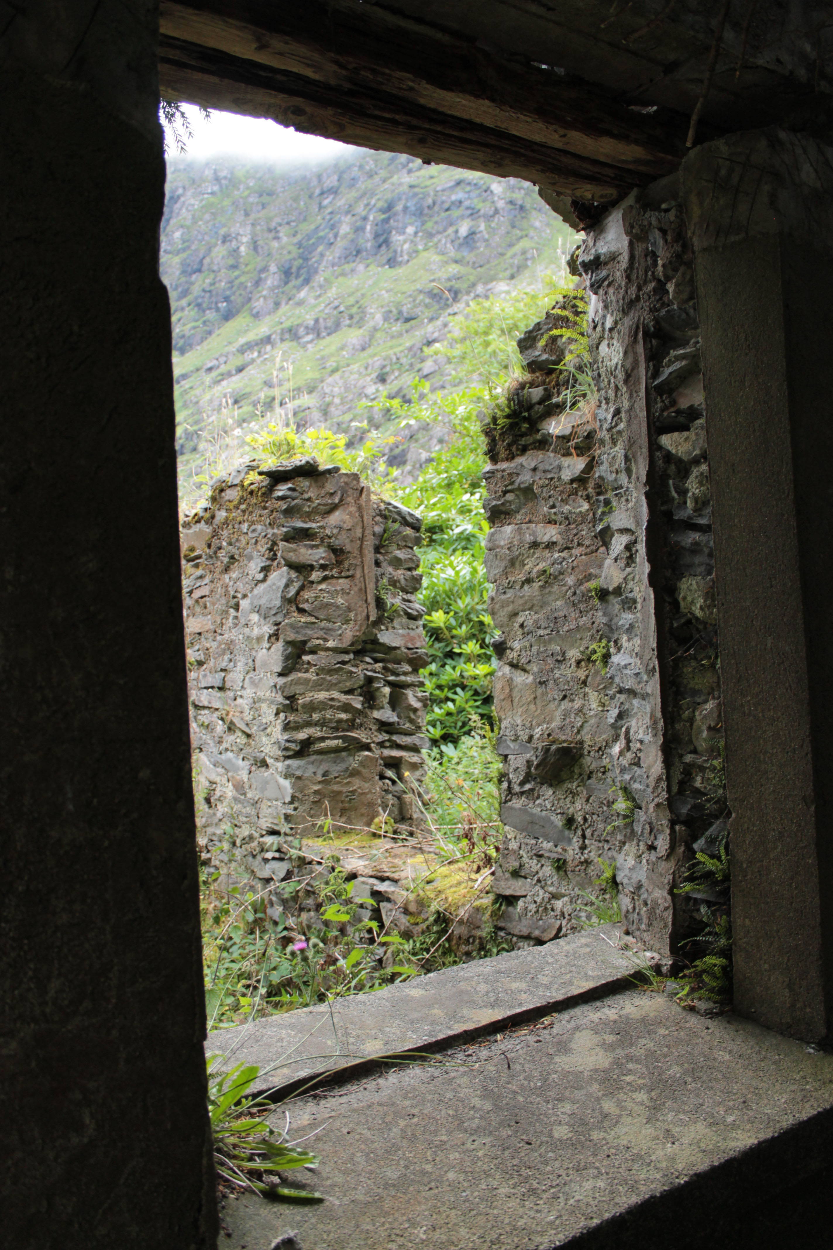 Doorway of broken shack at Dunloe