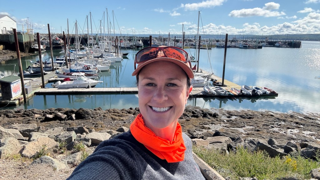 I am not a great picture-taker! There were a ton of bikes, but I didn’t even consider taking pics of them all! I was usually caught up in chatting with people. I did, however, want to get a shot with the Digby scallop fleet and all the sailboats. Had I KNOWN that The Bluenose II was docked in Digby that day, I could have gotten a pic there! I missed her in Lunenburg, but I got her in Yarmouth the day after the Rally.