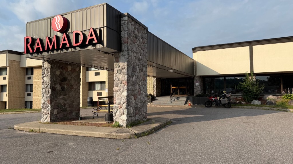 When I arrived in North Bay Petunia told me I still had another 30 minutes of driving before I reached the hotel I had in mind. I hadn’t booked ahead, but was optimistic. When I walked in to the Ramada, the gal at the front desk said she wanted me to see the room before she booked it for me. “Is it really that bad?” I asked. She advised that seeing I am on a bike with a lot of stuff, she just wanted me to be sure I liked it before hauling gear into my room. One look told me that yah, it’s DEFINITELY a good room!